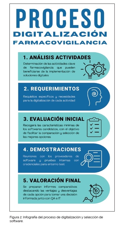 La digitalización de un área de farmacovigilancia comienza con el estudio y el análisis de las actividades que pueden beneficiarse de la digitalización. Una vez identificadas, se establecen los requerimientos específicos y necesidades para la digitalización de cada una de ellas.