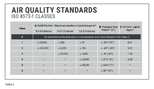 *En la clasificación ISO no se incluye una numeración en cuanto a la pureza microbiológica, sin embargo, su control debe formar parte de la monitorización tal y como veremos más adelante, y es la parte 7 de la norma ISO 8573 la que recoge información específica sobre detección de agentes microbiológicos.