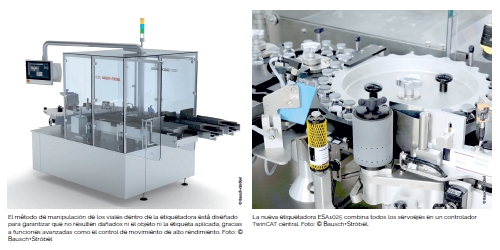 Desde hace más de 50 años, Bausch+Ströbel SE + Co. KG, con sede en Ilshofen (Alemania), desarrolla sistemas de envasado y producción para la industria farmacéutica y similares. El objetivo de la empresa es ofrecer las mejores soluciones técnicas y económicas para los retos del mercado moderno. La nueva etiquetadora ESA1025 para diversos envases farmacéuticos es un perfecto ejemplo de aplicación con el control basado en PC de Beckhoff como controlador de movimiento central.