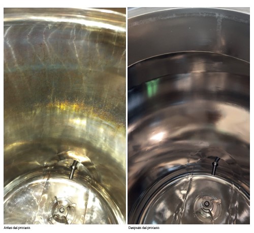Aunque el inoxidable se pasiva de manera natural, el tiempo que necesita la superficie del equipo para realizar la pasivación puede ser largo y no podemos garantizar que alguna partícula impida que en ese punto no se obtenga la formación de la capa pasiva debilitando el material. Es por ello necesario forzar esta pasivación de manera química.