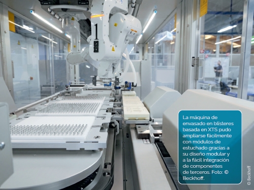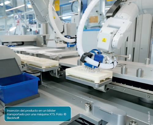 En 2018, Elos Medtech fue la primera empresa de Dinamarca en desarrollar una nueva máquina de envasado basada en el sistema XTS de Beckhoff. Aprovechando la flexibilidad del sistema de transporte modular con los movers controlables individualmente, Elos fue capaz de automatizar el proceso hasta entonces manual de envasado de componentes dentales en blísteres. En las operaciones cotidianas, la rápida capacidad de cambio del sistema XTS contribuye a aumentar la productividad y a reducir el consumo de recursos. «Tenemos que producir muchos lotes distintos de pequeño volumen cada día, por lo que la flexibilidad de la máquina y su capacidad de cambio rápido son factores esenciales para nosotros. Solo tardamos entre 10 y 30 minutos en ajustar la configuración de la envasadora», afirma Rune Callesen, jefe del departamento de automatización de Elos Medtech. «Esta envasadora está totalmente validada en lo que respecta a los estrictos requisitos aplicables en la industria médica, en términos de un entorno limpio y sin polvo, alta precisión, fiabilidad, control de calidad y pruebas para una trazabilidad completa».