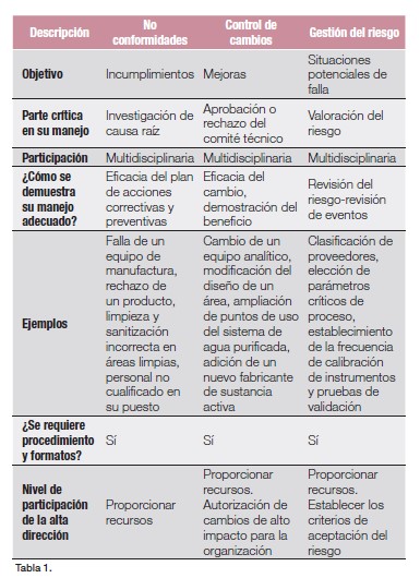 No se puede hablar de calidad, seguridad y eficacia si, tanto en las BPM como en el SGC involucrado, no se demuestra cumplimiento con evidencia objetiva y dentro de ellos hay 3 sistemas que son fundamentales para lograr los objetivos técnicos y regulatorios. Nos referimos al sistema de gestión del riesgo (SGR), control de cambios (CC) y no conformidades (NC) o desviaciones.