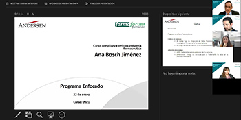 Farmaforum Formación y Andersen inauguraron el pasado 22 de enero la quinta edición del curso superior de ‘Compliance officers en la industria farmacéutica y afines’. Tras el éxito de las cuatro ediciones anteriores desarrolladas en Madrid y Barcelona, este año se celebra en formato online durante nueve jornadas que se llevarán a cabo hasta el 19 de marzo. El curso está siendo impartido de manera telemática con el fin de asegurar las medidas sanitarias, ofreciendo contenidos enfoc