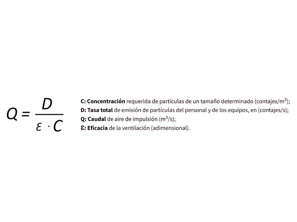 Posiblemente uno de los conceptos más extendidos y ligados a estas instalaciones es el de recirculaciones/hora o cambios/hora (ACH Air Changes per Hour). Es un principio prácticamente intocable. Muchas salas blancas son cuestionadas e incluso rechazadas por no cumplir escrupulosamente las ACH especificadas, independientemente de que los contajes de partículas en reposo y actividad se mantengan claramente dentro de los límites. ISO 14644-16 desmitifica y cuestiona la utilidad real de las ACH como método de cálculo para la definición de los caudales de ventilación. En cambio, lo que propone es una sencilla fórmula a partir de la cual se calcula el caudal de ventilación en función de las partículas generadas en el interior de la sala por unidad de tiempo y la eficacia de la ventilación.