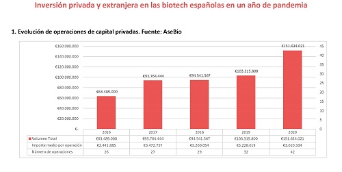 Según ha valorado AseBio, estas cifras también demuestran la importancia y el interés de los fondos internacionales en la industria biotech nacional en este año de pandemia, durante el cual se paralizó mayor parte de la economía. Según datos recopilados para el Informe AseBio 2020, el volumen de las operaciones con participación internacional y el número de empresas en las que han entrado inversores internacionales, vuelven a aumentar este año.