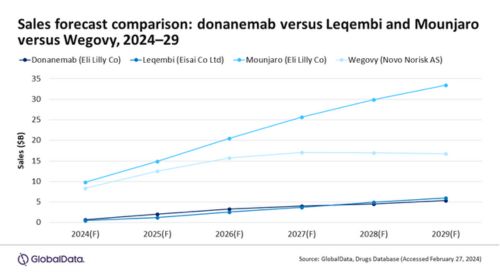Eli Lilly and Co quiere cambiar el panorama farmacéutico con sus tratamientos, Mounjaro (tirzepatida) para la obesidad y el muy esperado Donanemab para la enfermedad de Alzheimer en fase temprana y sintomática. Ambos medicamentos están listos para superar las expectativas del mercado y desafiar a los líderes de la industria existentes, según GlobalData. Mounjaro ya ha tenido un impacto notable en el tratamiento de la obesidad y la diabetes tipo 2, posicionando a Eli Lilly como un actor c