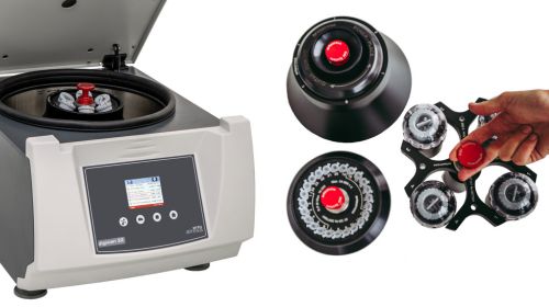 Para que esta técnica tenga éxito, se debe realizar un paso intermedio de centrifugación con un equipo como la centrífuga universal Digicen 22 y su rotor para trabajar con muestras de 100 ml, que puede programarse desde 100 hasta más de 4.000 g. Además, el sistema REI (Rotor Easy to Install) para un intercambio rápido y sencillo de rotores permite instalar el rotor y bloquearlo de forma segura sin necesidad de herramientas, así como desbloquearlo con sólo retirarlo de su posición. Este sistema facilita el manejo eficiente y conveniente del equipo, optimizando el proceso de centrifugación.