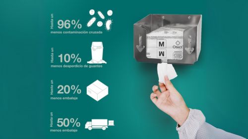 Además de su funcionalidad técnica, OTECT N310 introduce mejoras significativas en sostenibilidad. El sistema SafeDon permite reducir hasta un 20% los residuos de embalaje y disminuye un 10% el desperdicio de guantes, al evitar extracciones dobles o contacto accidental. Su diseño compacto también mejora la eficiencia en el almacenamiento y transporte, contribuyendo a reducir la huella de carbono de la cadena logística.