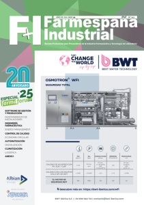 FI Revista Profesional para Proveedores de la Industria Farmacéutica y Tecnología de Laboratorio AÑO XX JUL/AGO 25 Nº 143 BWT Ibérica S.A | +34 900 922 712 | contacto@bwt-iberica.com TOC ppm C NO 3 ppm CONDUCTIVIDAD μS/cm GÉRMENES CFU/100 ml ENDOTOXINAS /ml CALIDAD DE ACUERDO CON PH. EUR. Y USP ≤ 0.5 Ph. Eur. ≤0.2 Ph. Eur. ≤1.1 (at 20°C) USP ≤1.3 (at 25°C) ≤10 Ph. Eur. ≤0.25 EU USP ≤0.25 I.U. CALIDAD CON LOS EQUIPOS COLD WFI DE BWT ≤ 0.02 ≤ 0.002 ≤ 0.1 ≤ 1.0 ≤ 0.06 EL FACTOR DE SEGURIDAD BWT 25x 100x 10x 10x 4x Descubre más en: https://bwt-iberica.com/wfi OSMOTRON WFI SEGURIDAD TOTAL ® SOFTWARE DE GESTIÓN YPRODUCCIÓN MANTENIMIENTO DE INSTALACIONES INGENIERÍA FARMACÉUTICA ENERGYMANAGEMENT CONTROL DE CALIDAD ECONOMÍA CIRCULAR AUTOMATIZACIÓN DIGITALIZACIÓN CLIMATIZACIÓN LOGÍSTICA ANEXO I ESPECIAL