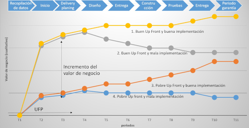 En la figura 1 se pueden observar estos tiempos sin un orden de magnitud cuantitativo. Notar que es crítico un UFP excelente con datos para un valor de negocio óptimo.