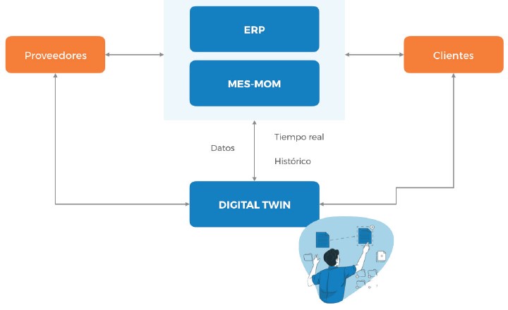 Por otro lado, los medios están saturados de páginas sobre digitalización, la maquinaria se ha vuelto smart, las ayudas están orientadas a sensórica, DT (gemelo digital) y AI (inteligencia artificial), etc. Así pues, no es extraño que las empresas piensen que instalando sensores IIoT (internet industrial de las cosas), ‘máquinas digitales’ en sus procesos de producción ya pueden aplicar técnicas de Deep Learning e implementar gemelos digitales de simulación de fabricación. Nada más lejos de la realidad; sabemos por experiencia que muchas industrias disponen de un ERP con nivel bajo de uso del módulo de producción, careciendo además de una plataforma MES-MOM para la ejecución y recogida de información en tiempo real de las operaciones de fabricación.