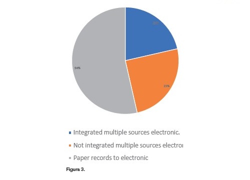 En la figura 3 se puede ver los resultados de la encuesta en cuanto al nivel de integración de datos en las plantas. A destacar que en un 46% de los casos ya se trabaja de un nivel medio a avanzado con datos electrónicos integrados. Preguntados por el tiempo aproximado para reunir los datos necesarios para CPV/producto, un 18% responde que menos de una hora. Este grupo probablemente se corresponde con el 21% más avanzado en digitalización. El resto dedica de cuatro horas en adelante.