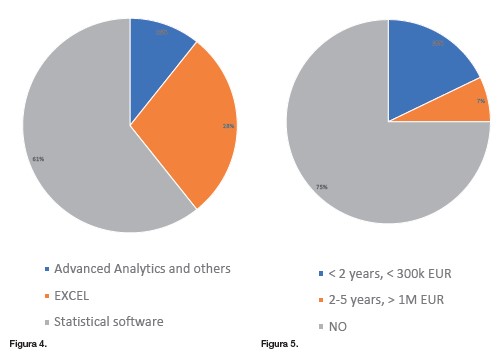 En la figura 4 se muestran los resultados de la encuesta en este apartado. La mayoría emplean Excel o paquetes estadísticos estándar pero un no despreciable 11% utilizan analítica avanzada.