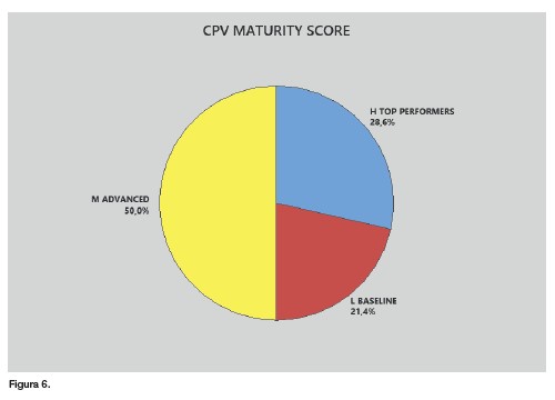 Basándonos en las respuestas obtenidas en esta encuesta, y asignando unas puntuaciones a cada una de ellas, hemos obtenido una clasificación en base al grado de madurez en la práctica del CPV, o lo que es lo mismo, en el grado de monitorización de procesos y mantenimiento del estado de control.