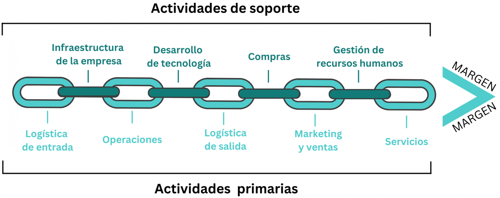 Una de las características del sector industrial es que su objetivo es aplicar cambios significativos (aplicación de recursos) a unos inputs físicos para obtener un producto listo para un mercado definido. Y ésta es su cadena de valor.
