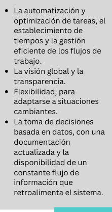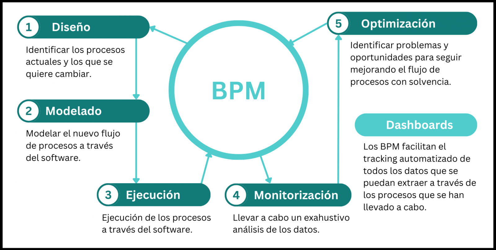 Así los BPMs no sólo permiten el conocimiento de los procesos sino también su rediseño y optimización continua para adaptarlos a las necesidades cambiantes, ya sea del cambio de objetivos de la propia organización o de generación de valor para los clientes.
