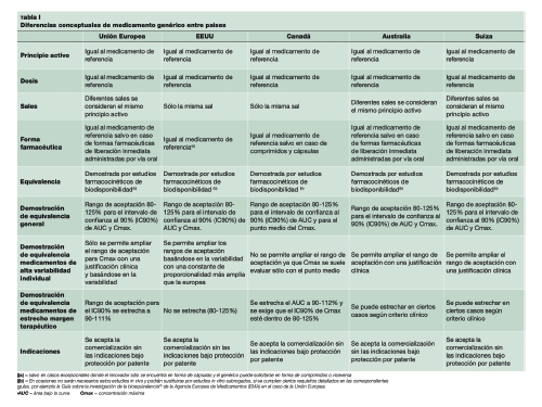 En la siguiente tabla, tomada de la AEMPS, se estructuran las diferencias según el país: