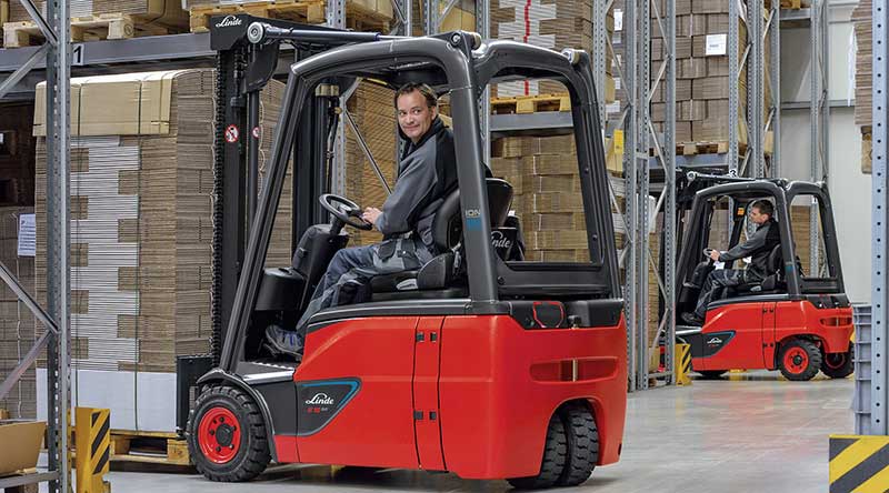 Las carretillas contrapesadas eléctricas Linde de batería de ion de litio tienen una capacidad de carga de entre 1,4 y 1,8 toneladas.