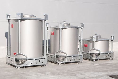 Tienen incorporados diversos accesorios opcionales, como válvula de vaciado tipo esfera o mariposa de acero inoxidable, y válvula de seguridad, también en acero inoxidable. Los contenedores AZZINI modelo PL y PLO se construyen en acero inoxidable laminado en frío y el PL en cinco medidas diferentes: 565, 750, 997, 1.251 y 1.500 litros. Todas las soldaduras de sus componentes se realizan mediante sistema TIG y los cordones externos e internos son decapados. También Bajo pedido pueden ser pulidos.