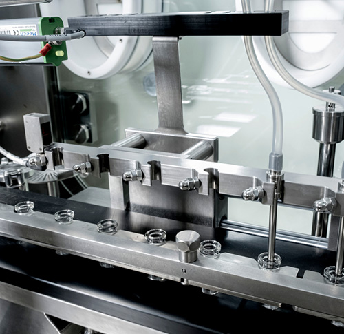 La VFCM100 en aislador de doble pared puede alcanzar una capacidad de producción de 6.000 piezas/hora. La máquina, desarrollada para medicamentos inyectables, está equipada con 4 bombas peristálticas, lo que permite una capacidad de llenado potencialmente infinita, un pesaje de control del 100% y puede manejar viales de vidrio con una capacidad entre 2ml y 100ml. Gracias a un fácil cambio de formato, la máquina también puede manipular viales de plástico.